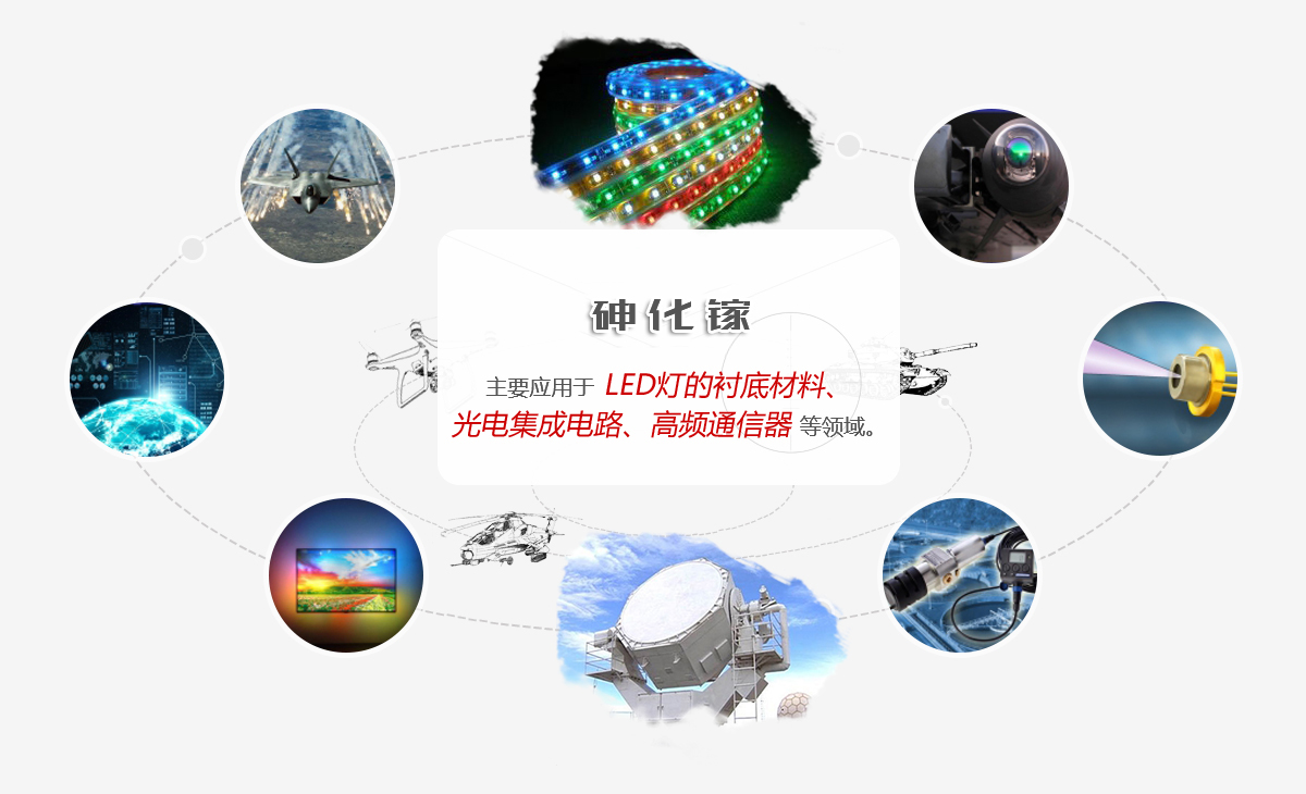 尊龙凯时生产的2-6英寸半导体级以及半绝缘体砷化镓晶体和衬底被广泛应用于纳米级半导体集成电路以及LED通用照明领域。 此外,公司还成功投产了具有国际先进水平的2-4英寸磷化铟衬底生产线。产品被广泛应用于微波振荡器与放大器、光纤通讯率放大器等领域。