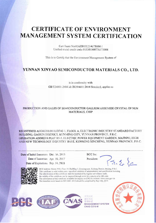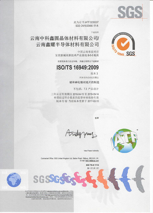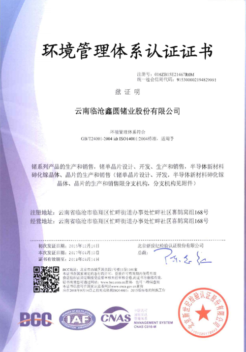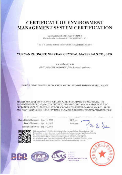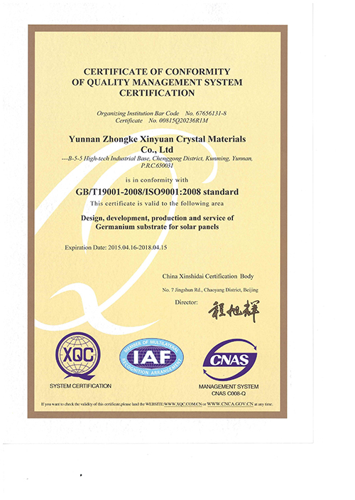 云锗质量管理体系认证书(英文)