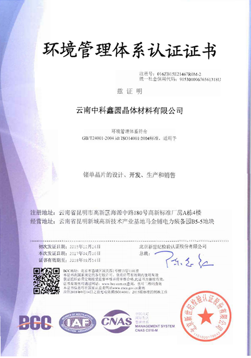 中科-环境管理体系认证证书(英文)